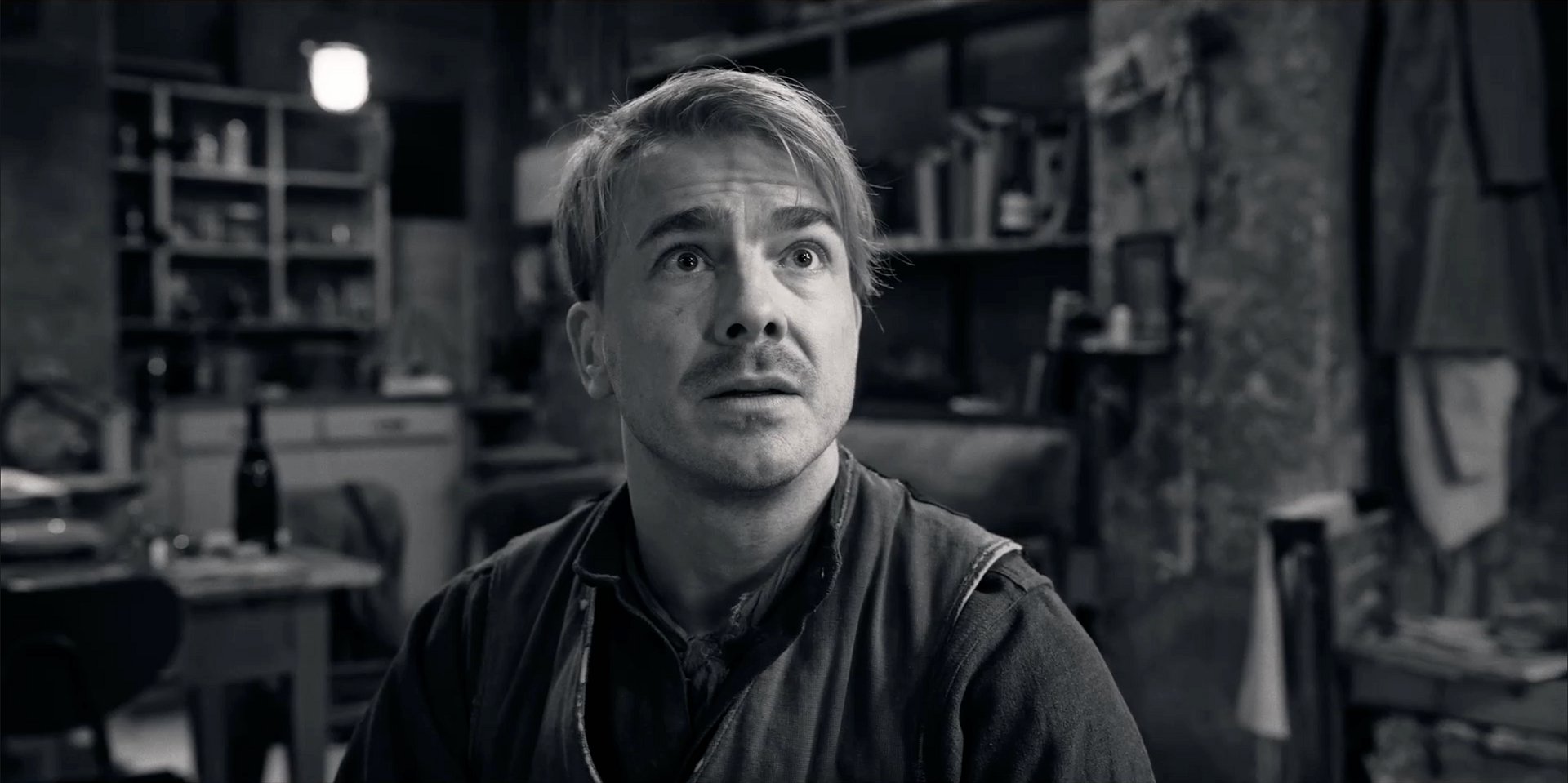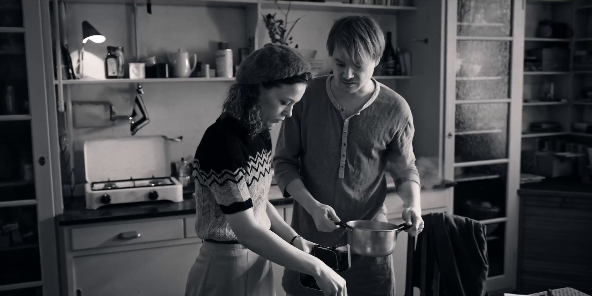Sieh dir die Szene aus Stiller genau an und achte dabei auf die Bildkomposition, Blickachsen, den Umgang der Kamera mit dem Fokus und der Schärfeverlagerung sowie auf Elemente der Mise-en-scene, die mit Identität und Identitätskonstruktion in Verbindung stehen. Erstelle mit dem Kamera-Icon Standbilder und nutze die Werkzeuge und Marker, um deine Beobachtungen auf der Arbeitsfläche zu verdeutlichen.